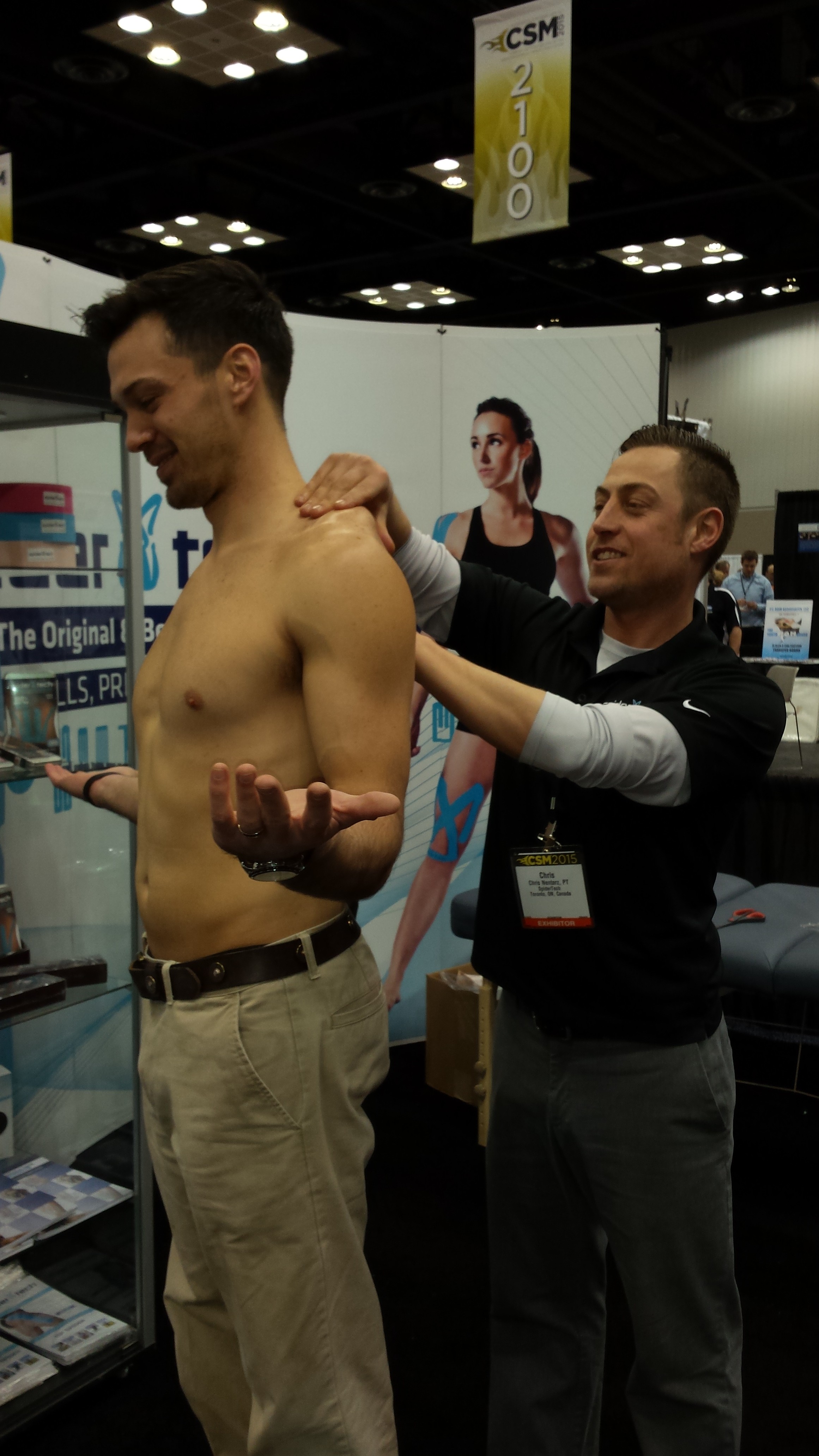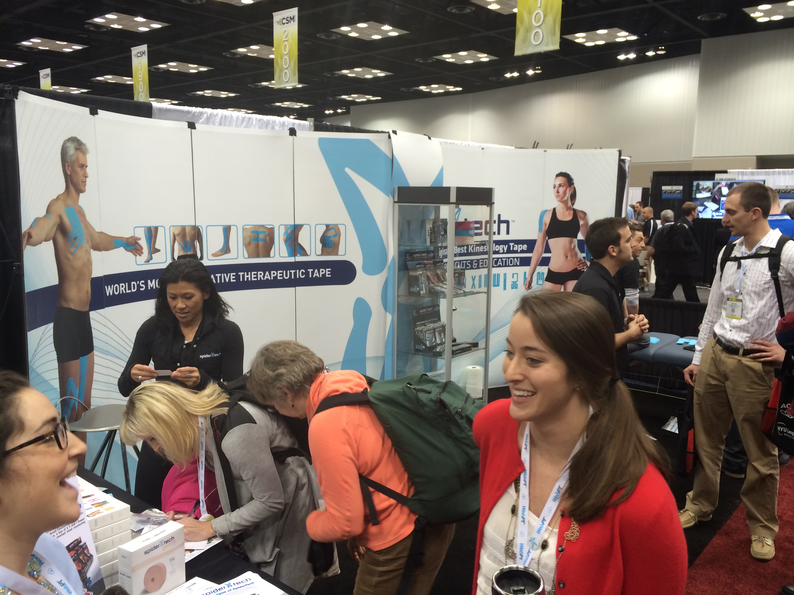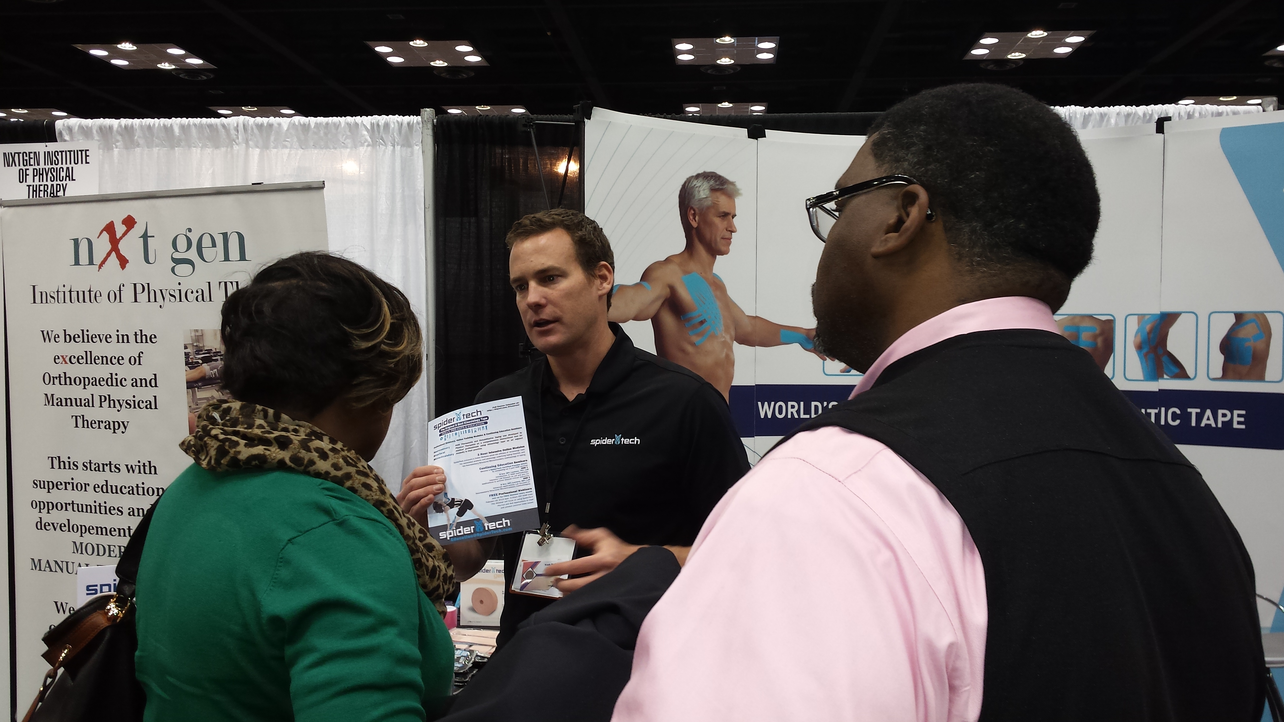 Karena, along with Alex Reid and Chris Nentarz of SpiderTech, manned the booth, delivering detailed information and demonstrating proper taping techniques.