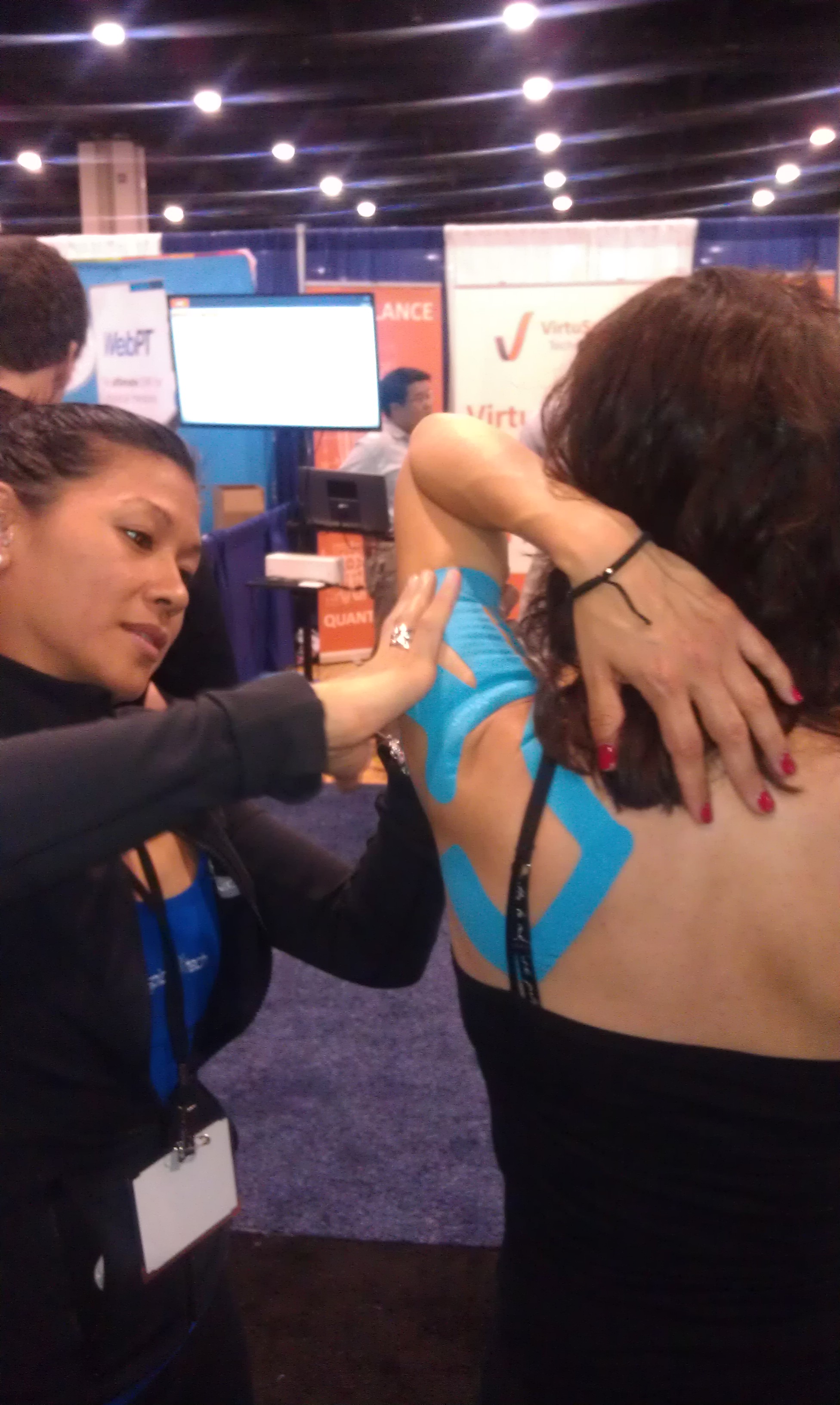 Karena, who serves as the Director of Education for SpiderTech Kinesiology Tape, helped demonstrate proper taping techniques at the booth (a special thanks to our lovely PT Assistant Suzie for taking part in the trial).